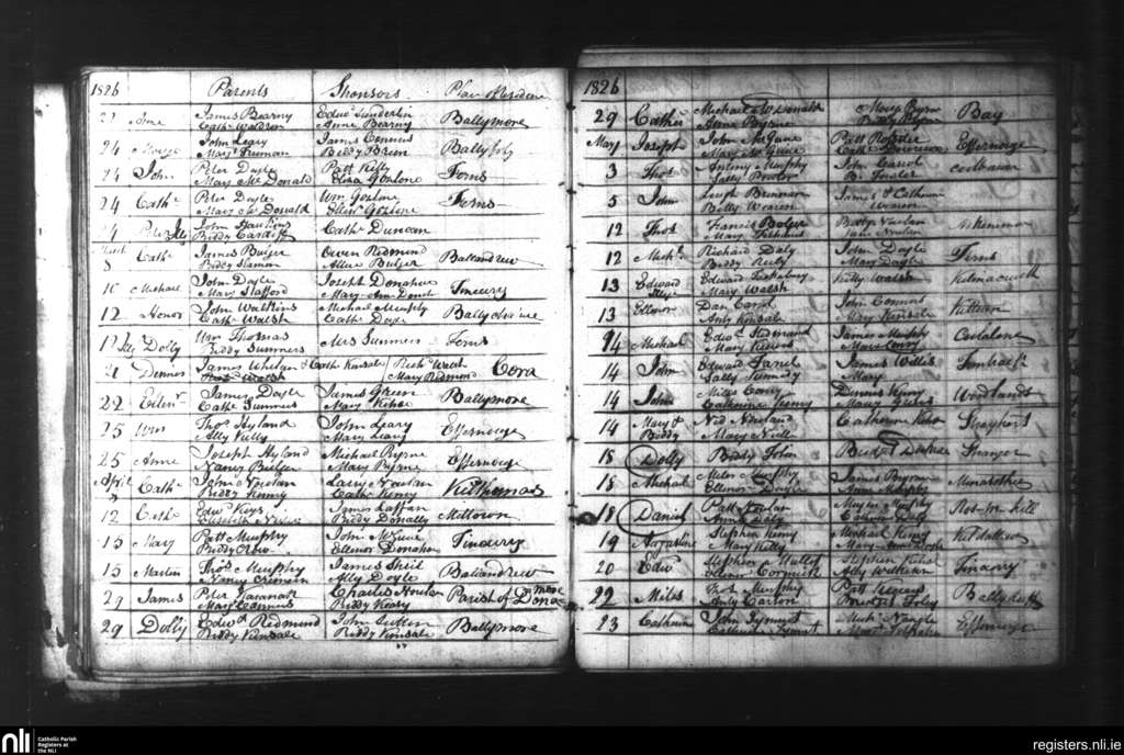 Ferns; County of Wexford; Diocese of Ferns. Baptisms, Feb. 1826 to May 1826