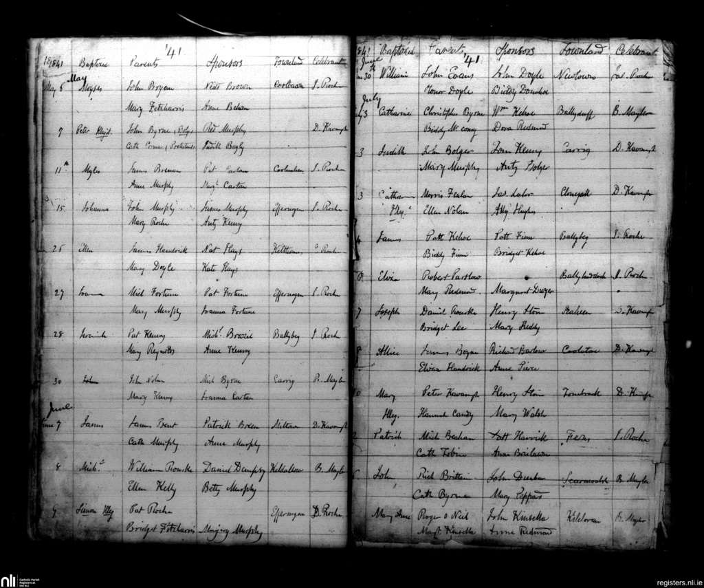 Ferns; County of Wexford; Diocese of Ferns. Baptisms, May 1841 to July 1841