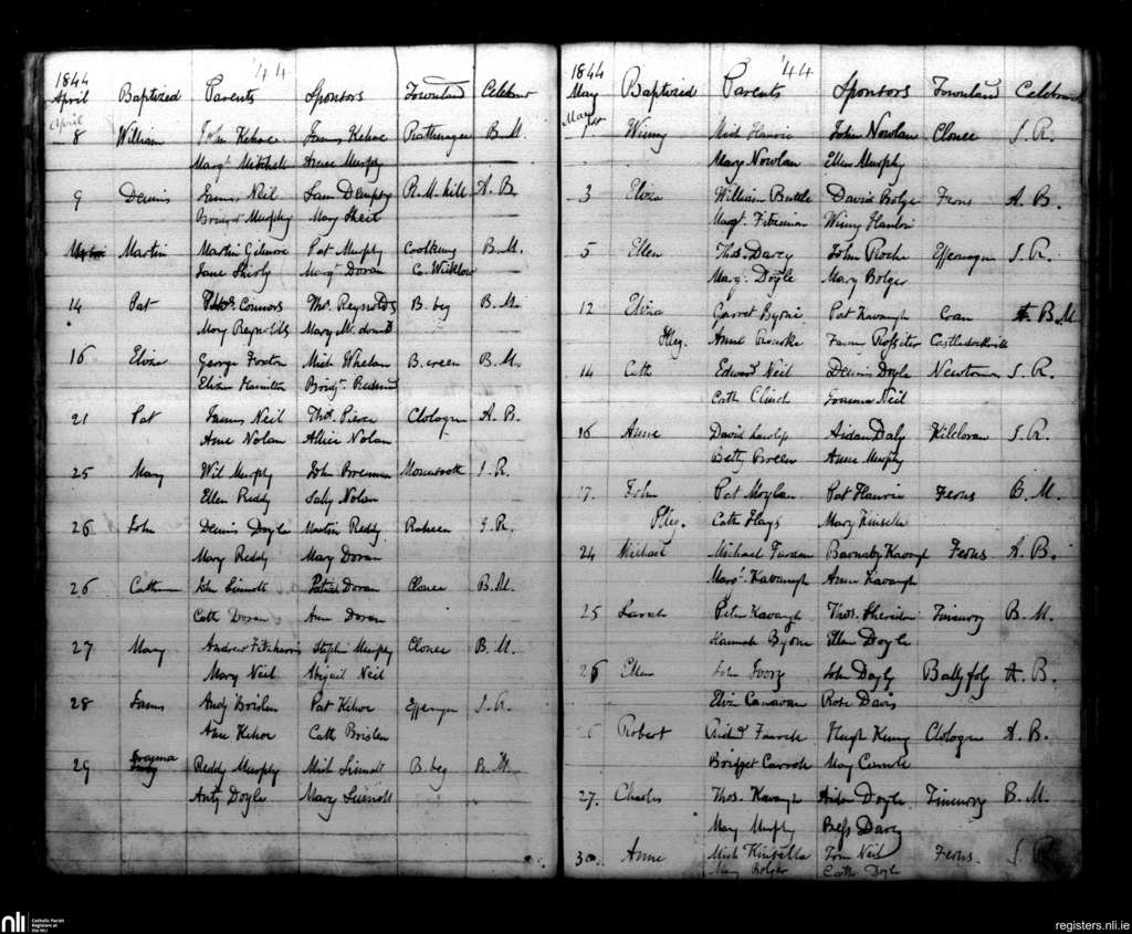 Ferns; County of Wexford; Diocese of Ferns. Baptisms, Apr. 1844 to May 1844