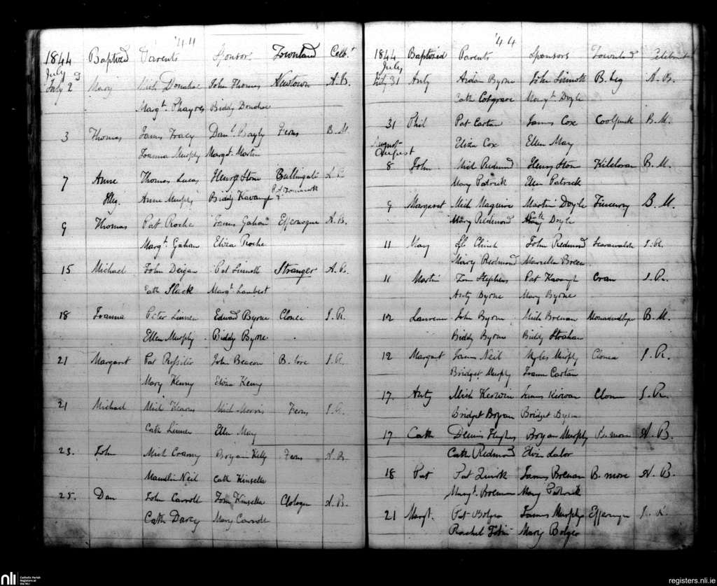 Ferns; County of Wexford; Diocese of Ferns. Baptisms, July 1844 to Aug. 1844