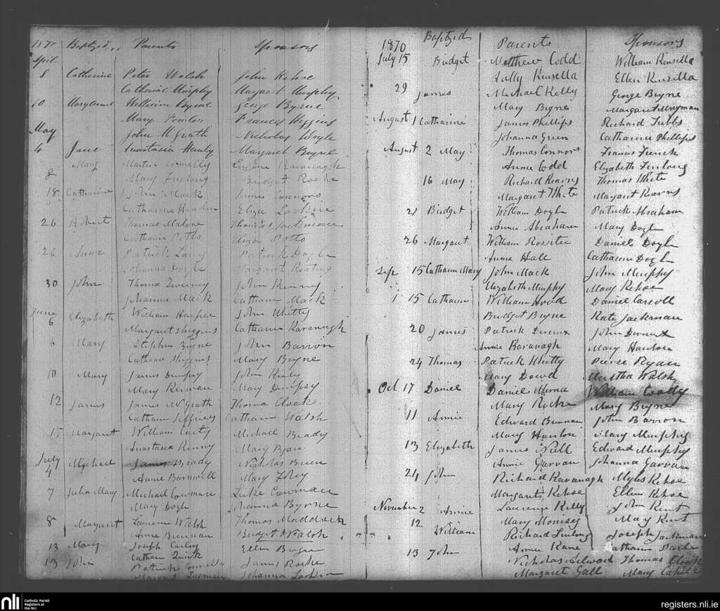 Glinn; County of Wexford; Diocese of Ferns. Baptisms, Apr. 1870 to Nov. 1870