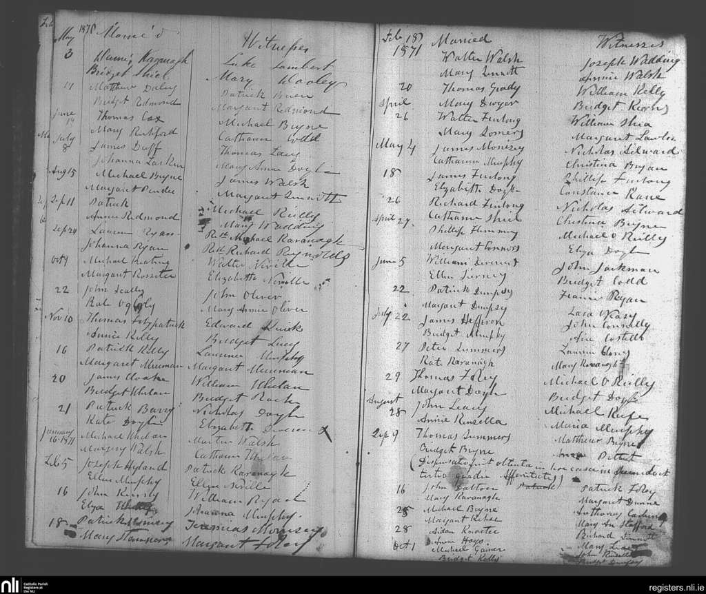 Glinn; County of Wexford; Diocese of Ferns. Marriages, May 1870 to Oct. 1871