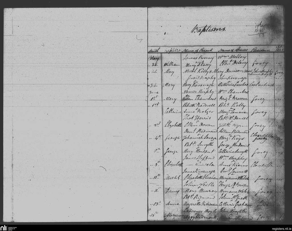 Gorey; County of Wexford; Diocese of Ferns. Baptisms, May 1845 to June 1845