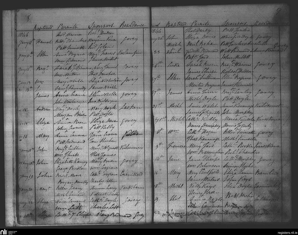 Gorey; County of Wexford; Diocese of Ferns. Baptisms, Jan. 1846 to Feb. 1846