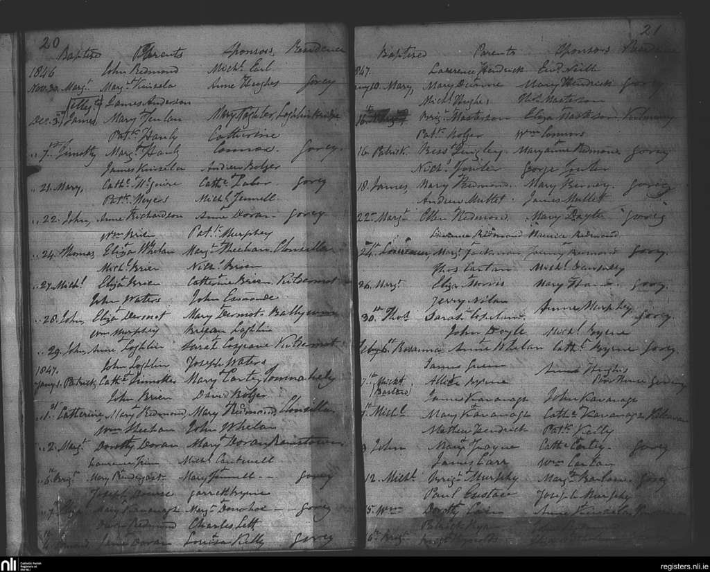 Gorey; County of Wexford; Diocese of Ferns. Baptisms, Nov. 1846 to Feb. 1847