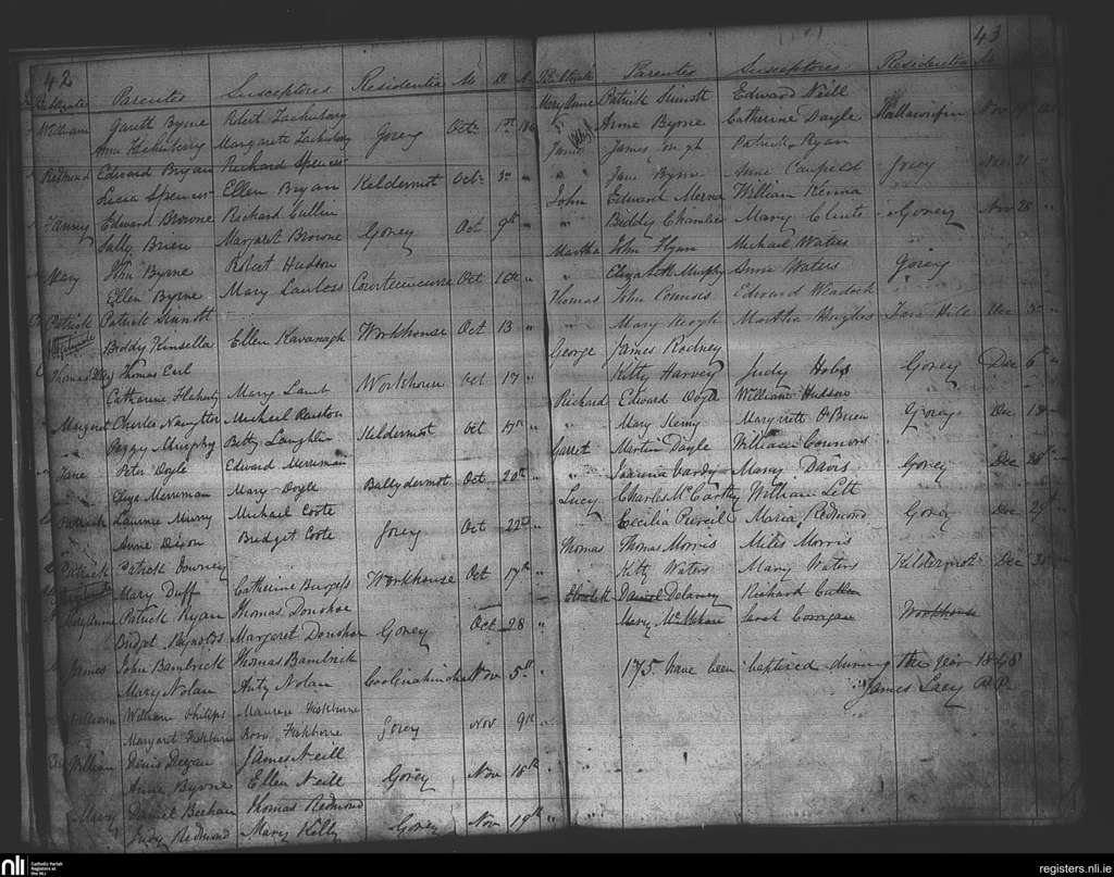Gorey; County of Wexford; Diocese of Ferns. Baptisms, Oct. 1848 to Dec. 1848