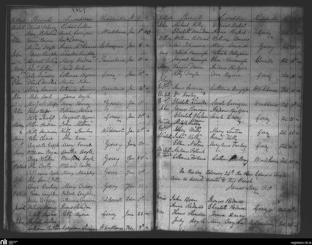 Gorey; County of Wexford; Diocese of Ferns. Baptisms, Jan. 1849 to Feb. 1849