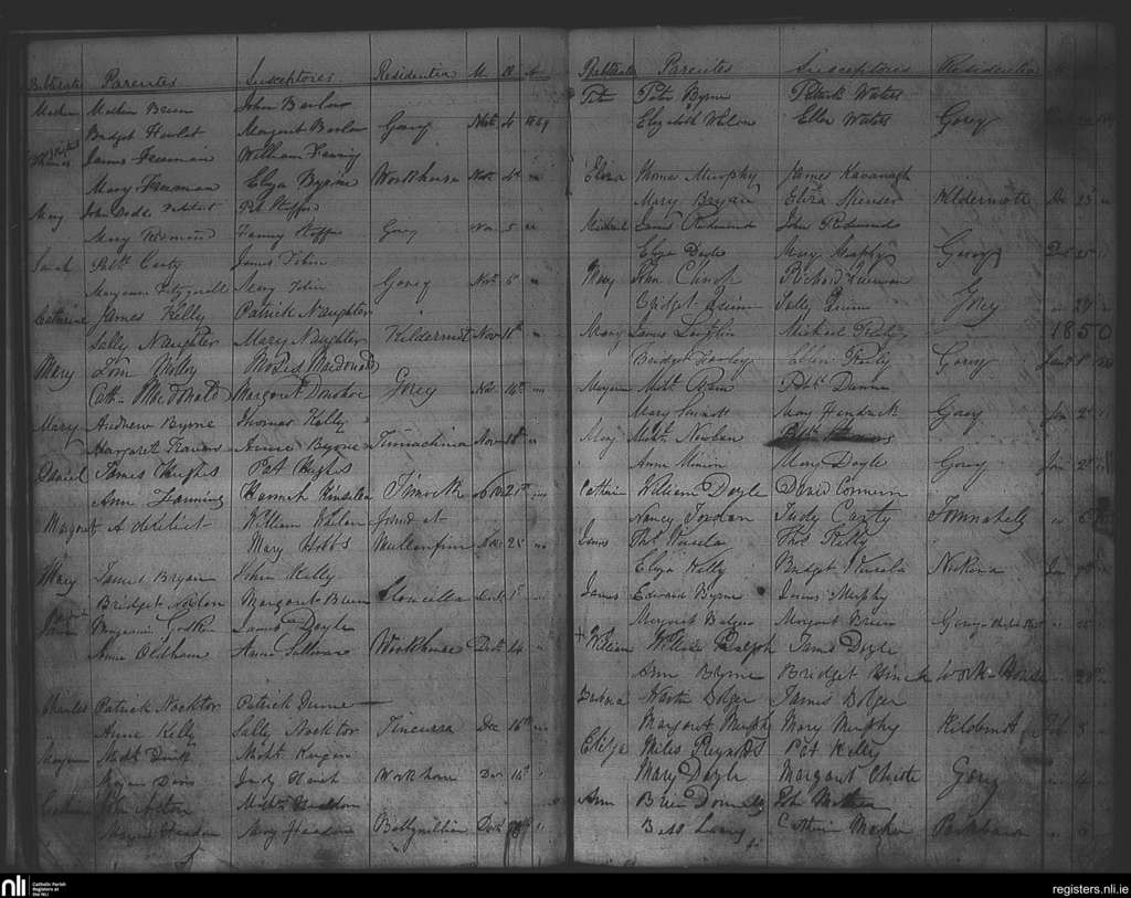 Gorey; County of Wexford; Diocese of Ferns. Baptisms, Nov. 1849 to Feb. 1850