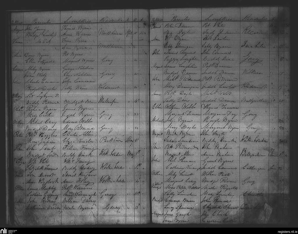 Gorey; County of Wexford; Diocese of Ferns. Baptisms, Apr. 1850 to June 1850