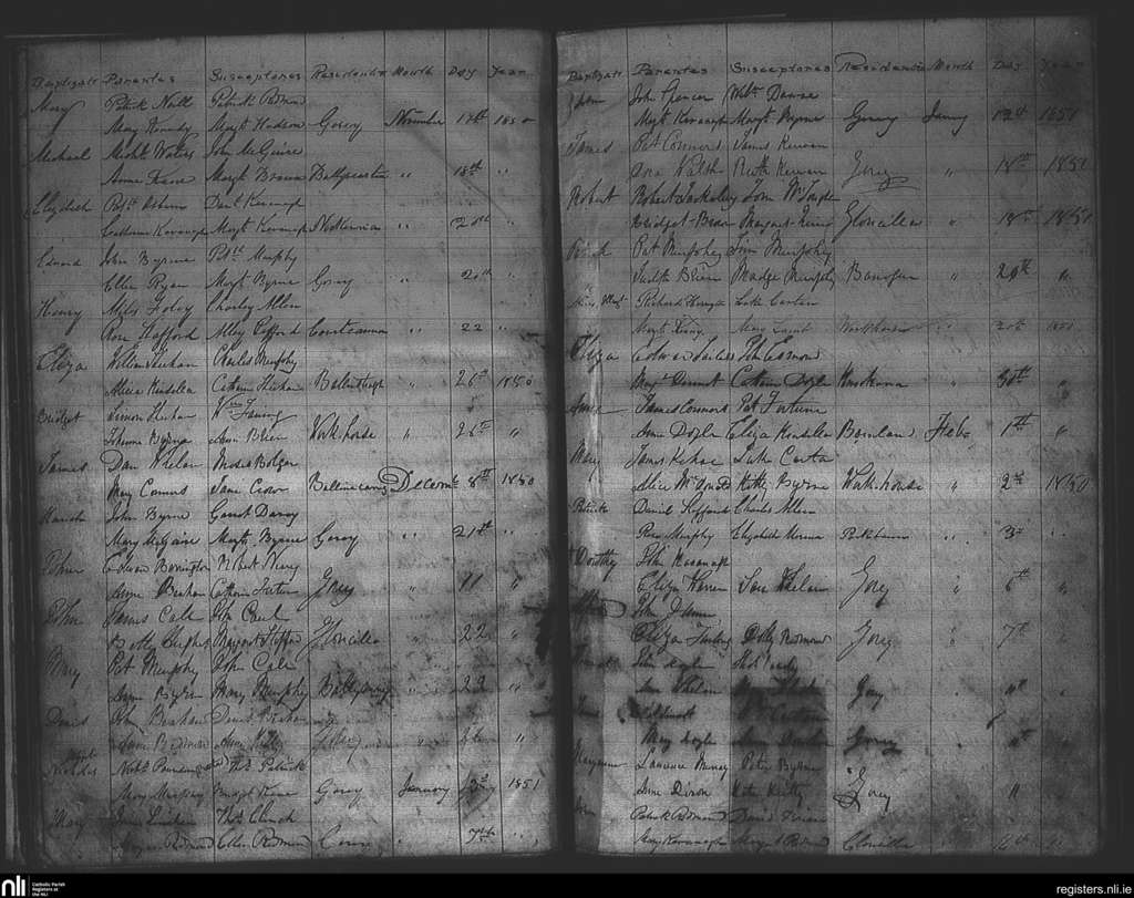 Gorey; County of Wexford; Diocese of Ferns. Baptisms, Nov. 1850 to Feb. 1851