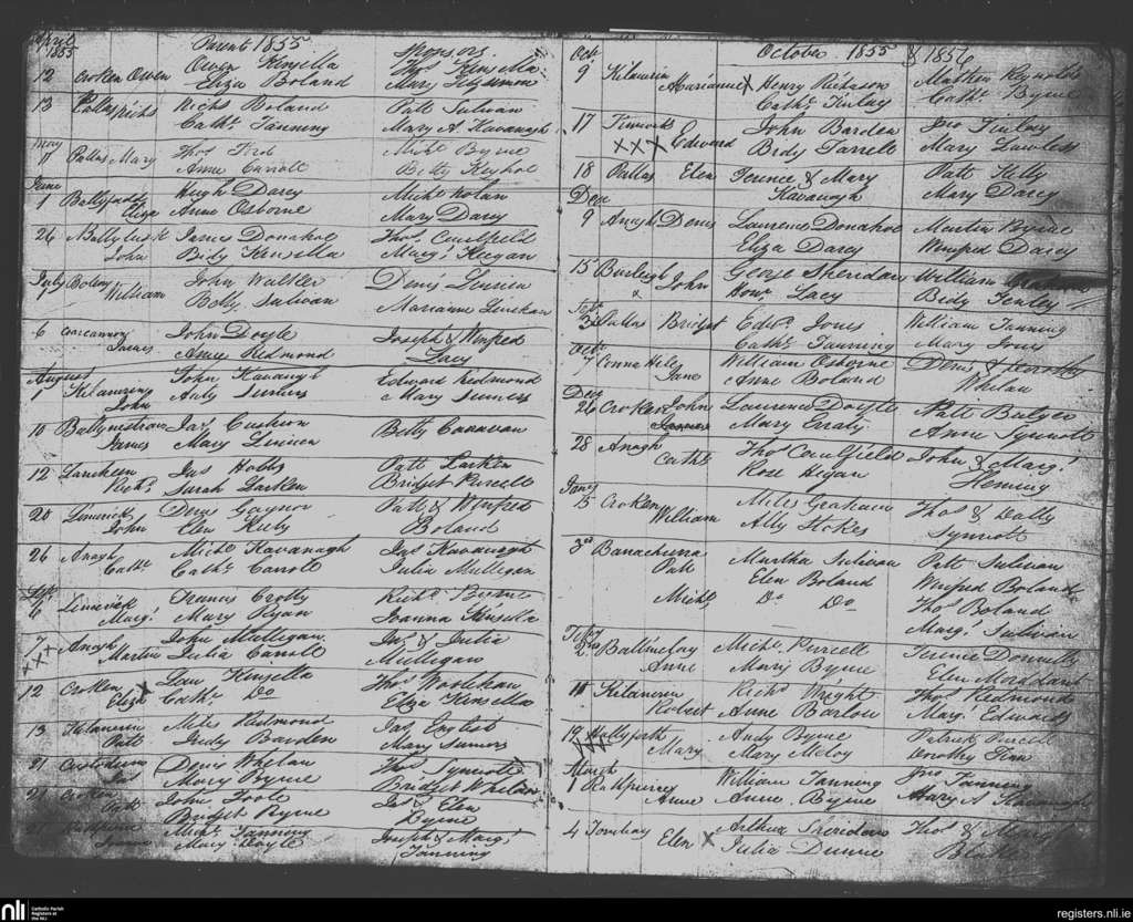 Killanerin; County of Wexford; Diocese of Ferns. Baptisms, Apr. 1855 to Mar. 1856