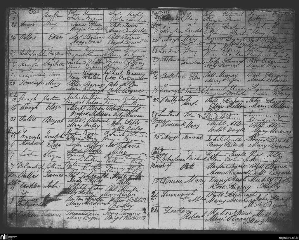 Killanerin; County of Wexford; Diocese of Ferns. Baptisms, May 1866 to Mar. 1867