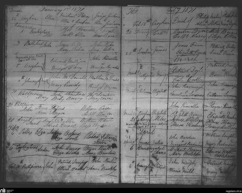 Killanerin; County of Wexford; Diocese of Ferns. Baptisms, Marriages, Dec. 1870 to June 1920