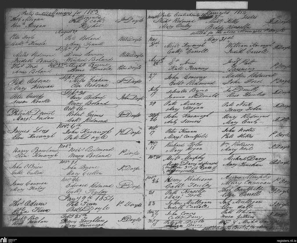 Killanerin; County of Wexford; Diocese of Ferns. Marriages, July 1853 to Feb. 1855