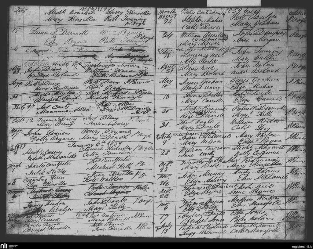 Killanerin; County of Wexford; Diocese of Ferns. Marriages, Feb. 1858 to Nov. 1860