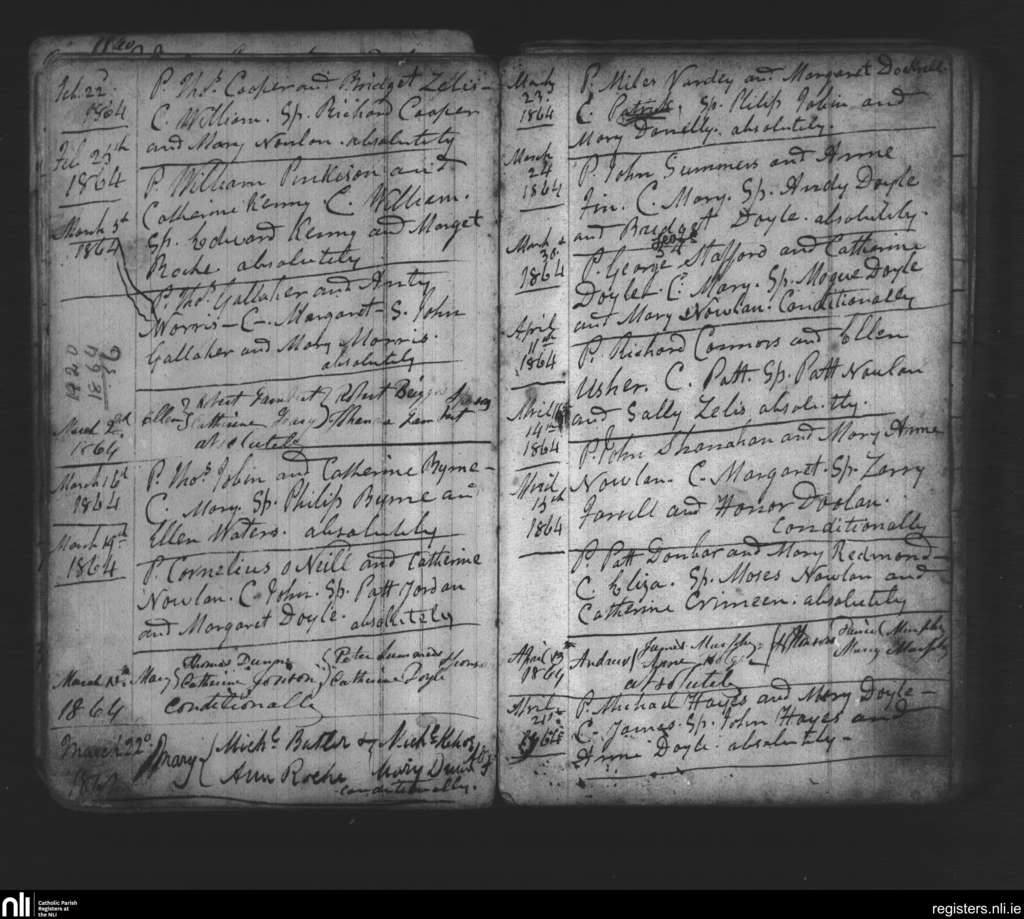 Marshalstown; County of Wexford; Diocese of Ferns. Baptisms, Feb. 1864 to Apr. 1864