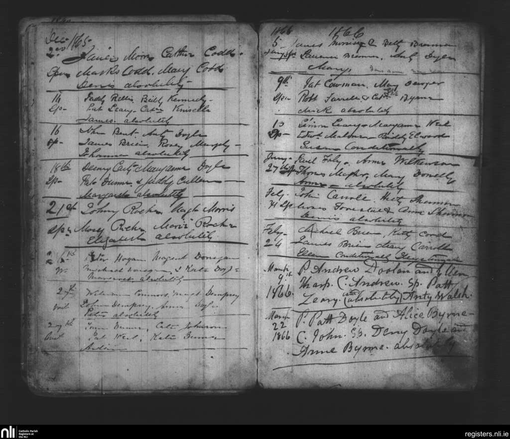 Marshalstown; County of Wexford; Diocese of Ferns. Baptisms, Dec. 1865 to Mar. 1866