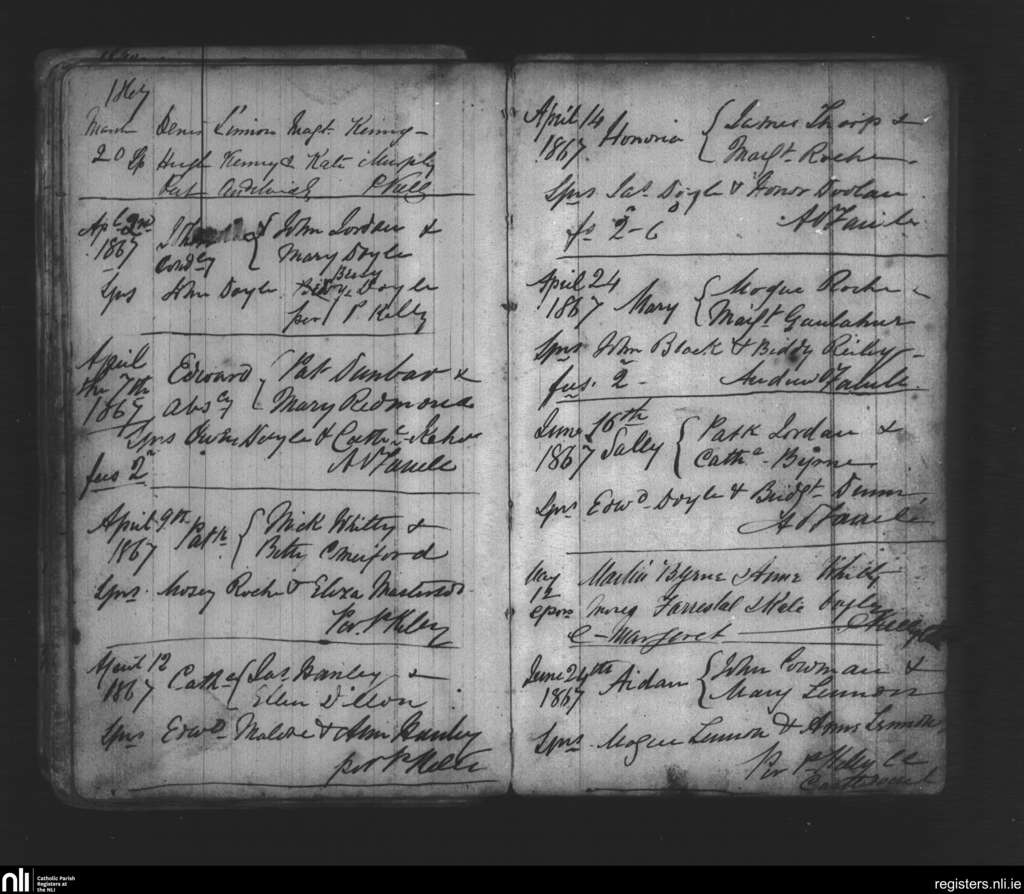 Marshalstown; County of Wexford; Diocese of Ferns. Baptisms, Mar. 1867 to June 1867