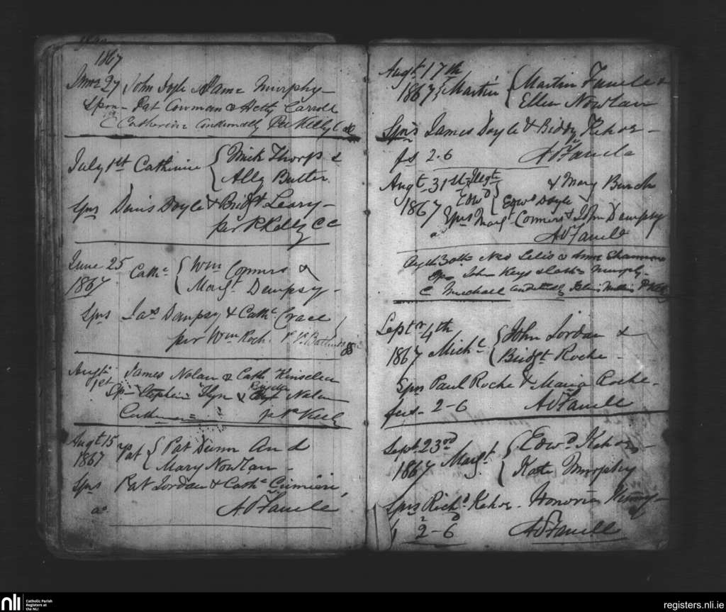 Marshalstown; County of Wexford; Diocese of Ferns. Baptisms, June 1867 to Sep. 1867