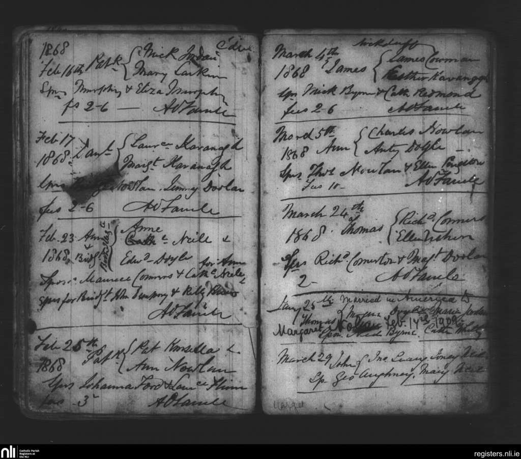 Marshalstown; County of Wexford; Diocese of Ferns. Baptisms, Marriages, Jan. 1868 to Feb. 1909
