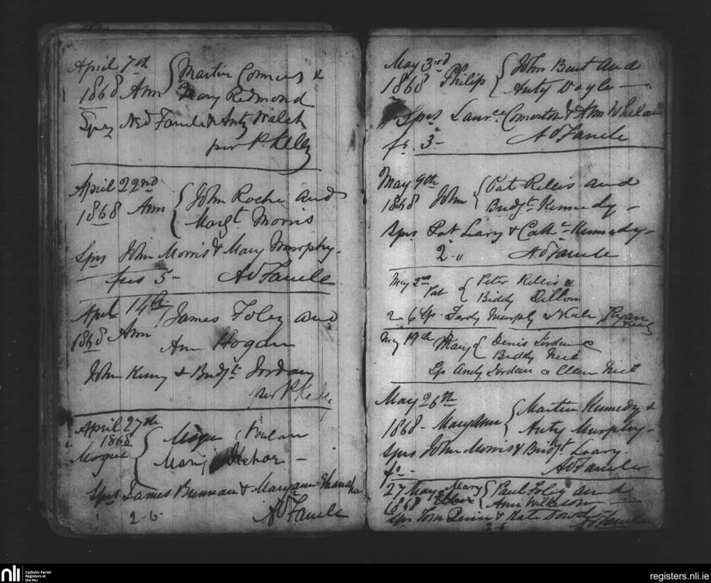Marshalstown; County of Wexford; Diocese of Ferns. Baptisms, Apr. 1868 to May 1868