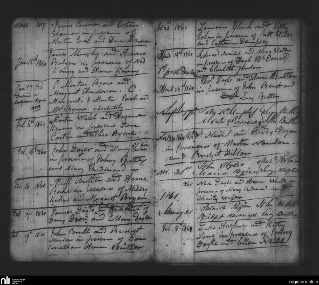 Marshalstown; County of Wexford; Diocese of Ferns. Marriages, Nov. 1859 to Feb. 1861