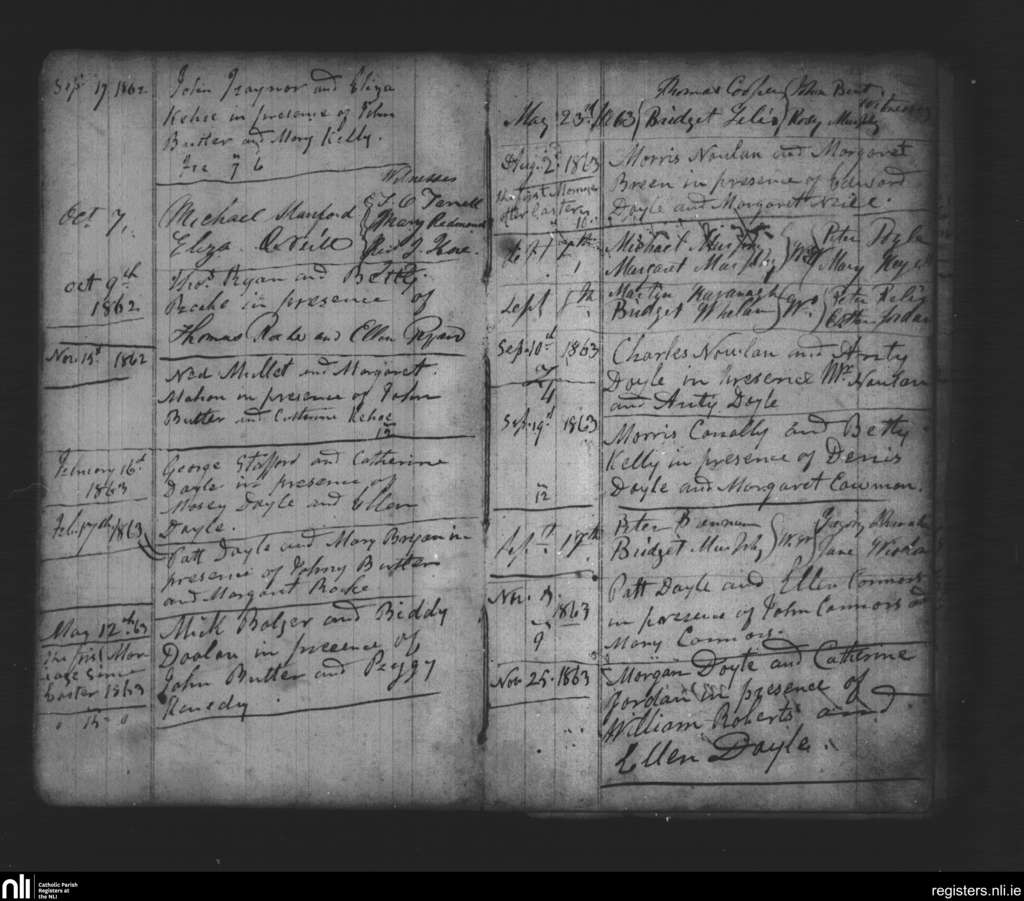 Marshalstown; County of Wexford; Diocese of Ferns. Marriages, Sep. 1862 to Nov. 1863