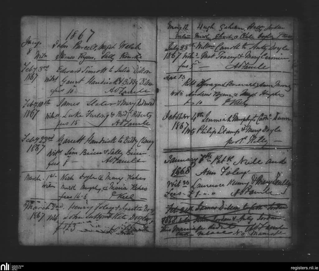 Marshalstown; County of Wexford; Diocese of Ferns. Marriages, Jan. 1867 to Jan. 1868
