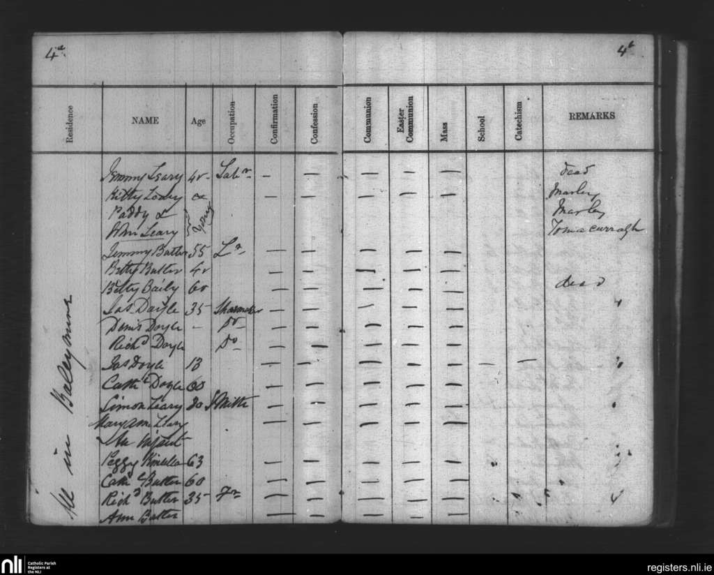 Marshalstown; County of Wexford, Wexford; Diocese of Ferns. Census, Translation missing: en.month_abv_0 1867
