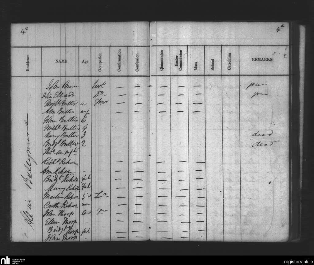 Marshalstown; County of Wexford, Wexford; Diocese of Ferns. Census, Translation missing: en.month_abv_0 1867