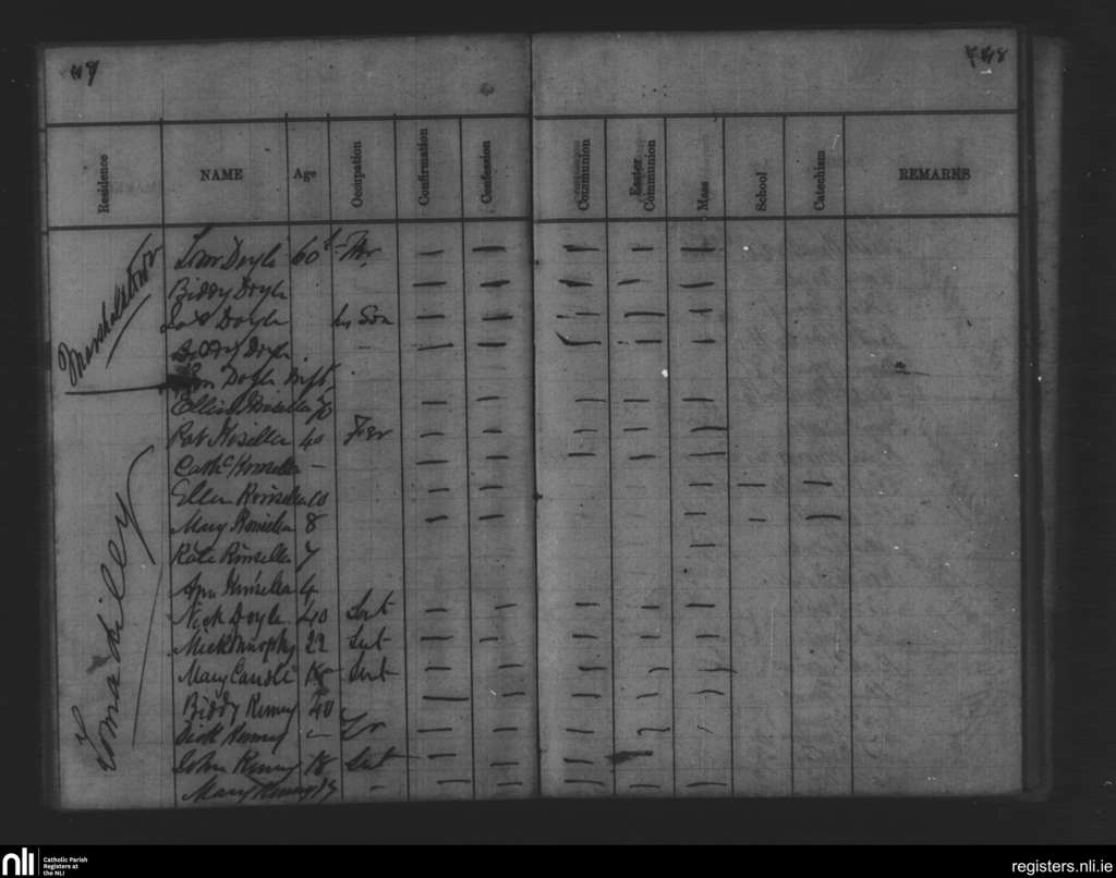 Marshalstown; County of Wexford, Wexford; Diocese of Ferns. Census, Translation missing: en.month_abv_0 1867