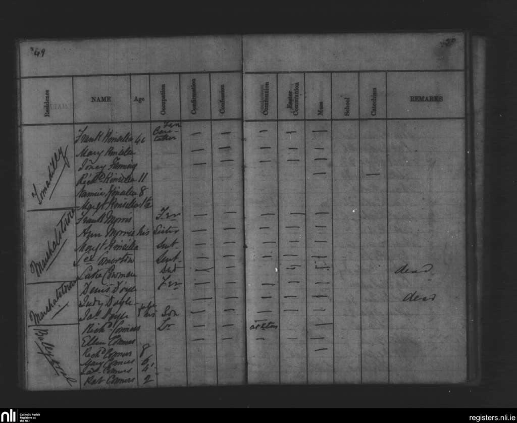 Marshalstown; County of Wexford, Wexford; Diocese of Ferns. Census, Translation missing: en.month_abv_0 1867