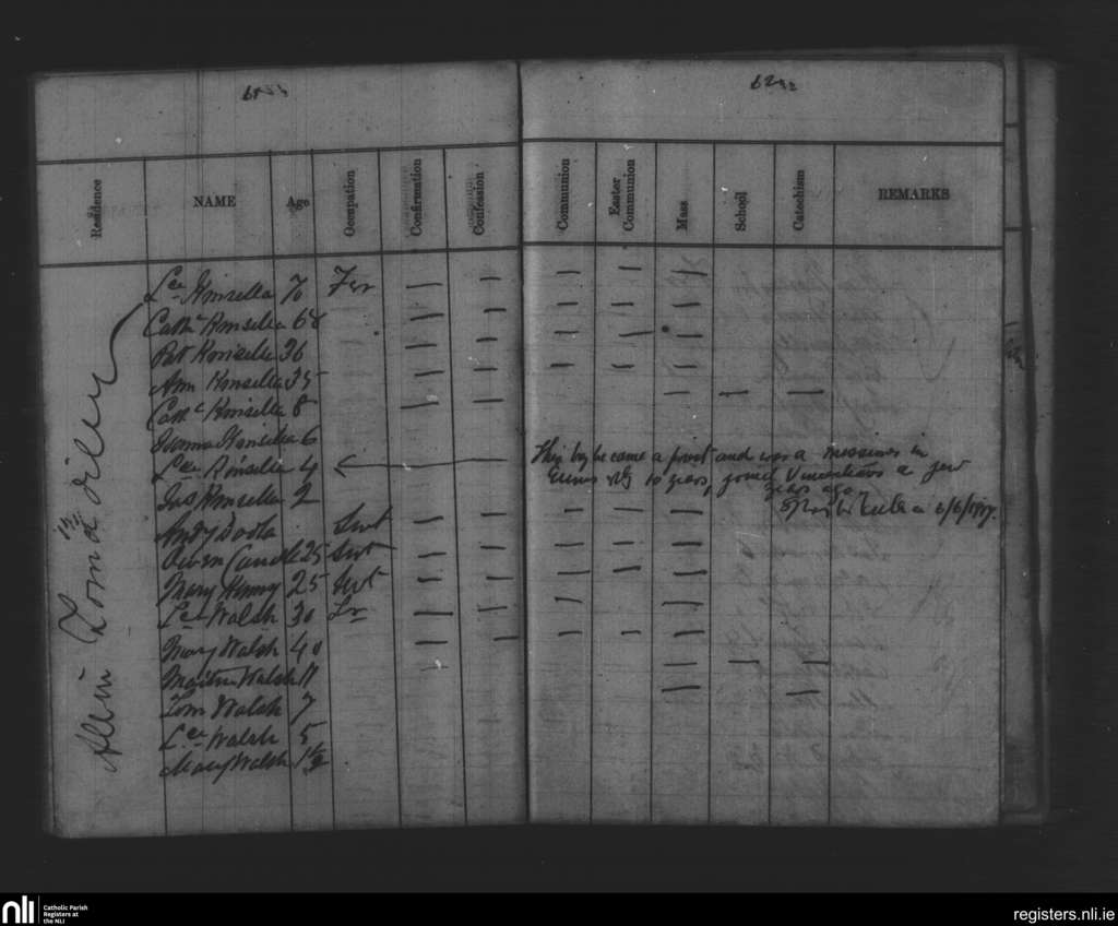 Marshalstown; County of Wexford, Wexford; Diocese of Ferns. Census, Translation missing: en.month_abv_0 1867