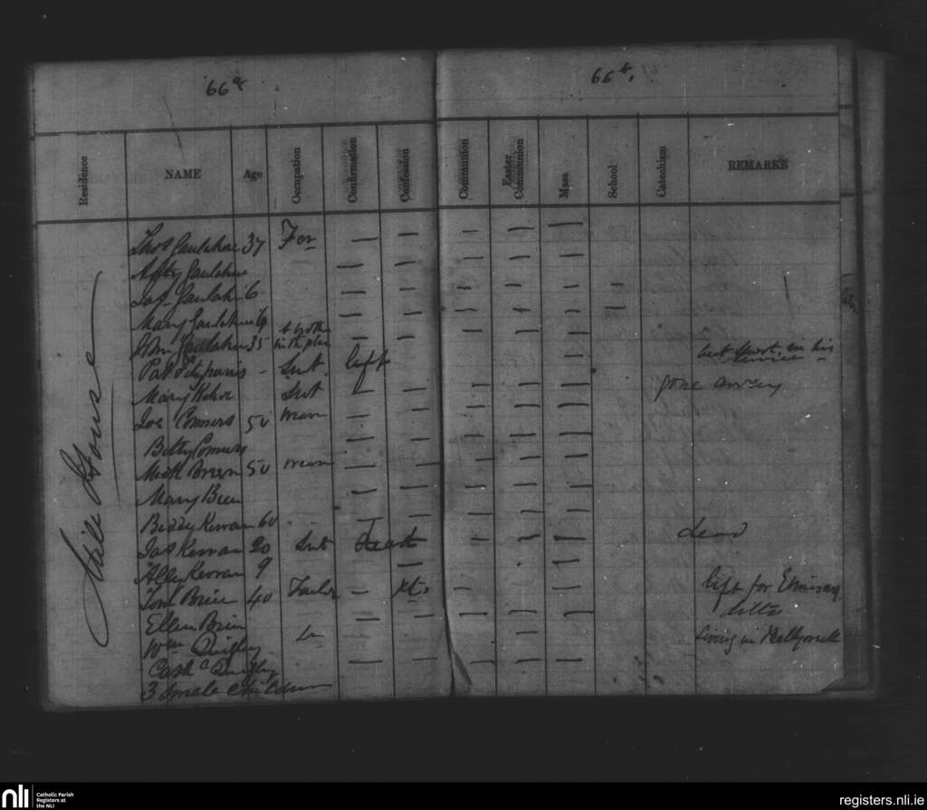 Marshalstown; County of Wexford, Wexford; Diocese of Ferns. Census, Translation missing: en.month_abv_0 1867