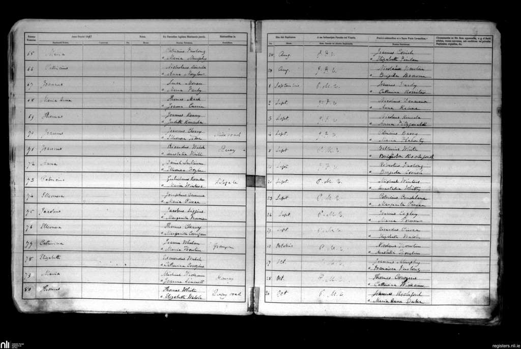 Kilmore; County of Wexford; Diocese of Ferns. Baptisms, Aug. 1850 to Oct. 1850