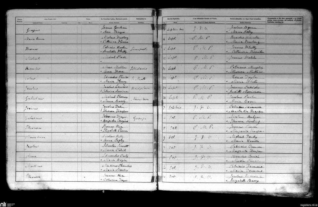 Kilmore; County of Wexford; Diocese of Ferns. Baptisms, Sep. 1851 to Oct. 1851