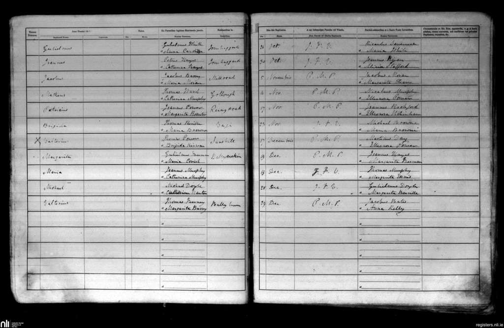Kilmore; County of Wexford; Diocese of Ferns. Baptisms, Oct. 1851 to Dec. 1851