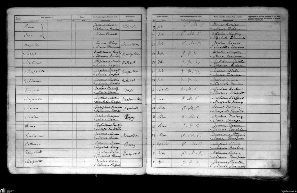 Kilmore; County of Wexford; Diocese of Ferns. Baptisms, Feb. 1852 to Apr. 1852
