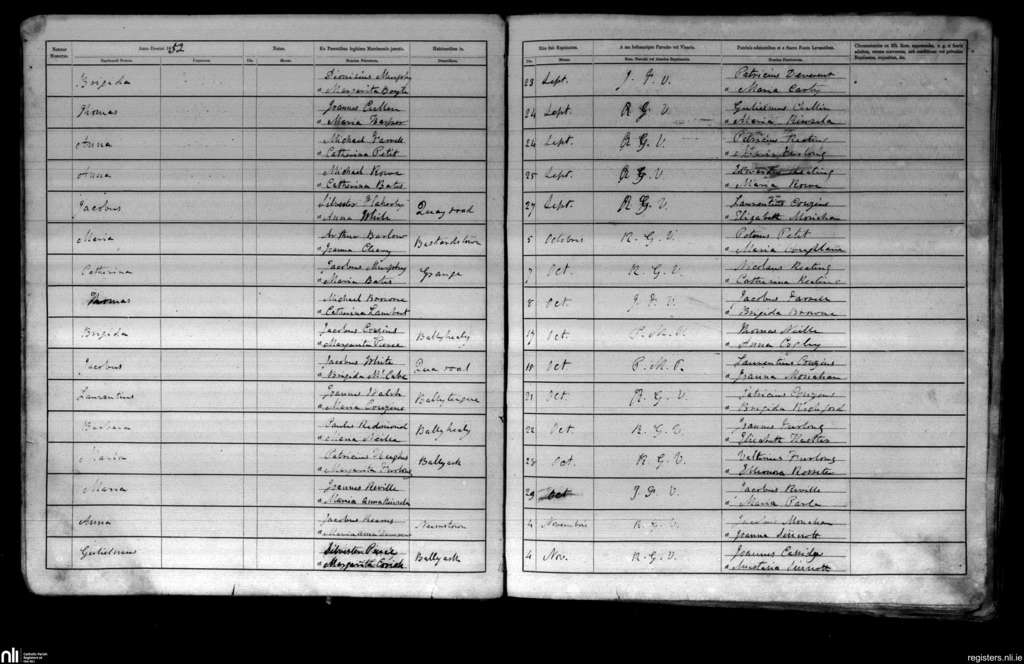 Kilmore; County of Wexford; Diocese of Ferns. Baptisms, Sep. 1852 to Nov. 1852
