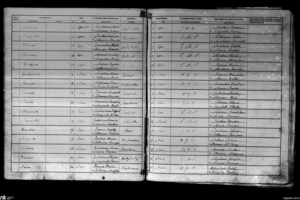 Kilmore; County of Wexford; Diocese of Ferns. Baptisms, Apr. 1855 to May 1855