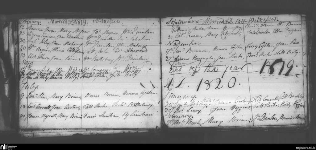 Annakissy; County of Cork; Diocese of Cloyne. Marriages, Feb. 1819 to Feb. 1820