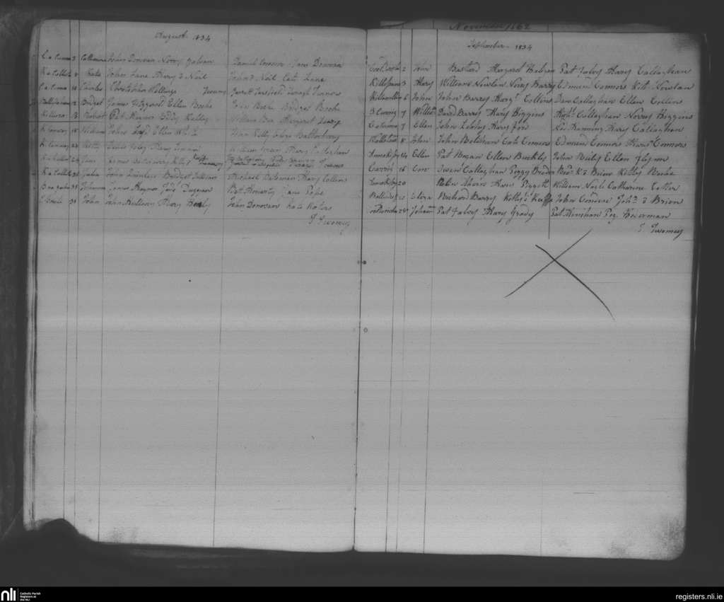 Annakissy; County of Cork; Diocese of Cloyne. Baptisms, Aug. 1834 to Sep. 1834