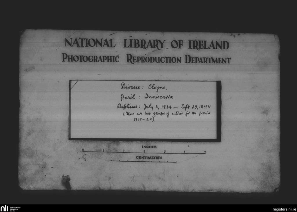 Inniscarra; County of Cork; Diocese of Cloyne. Baptisms