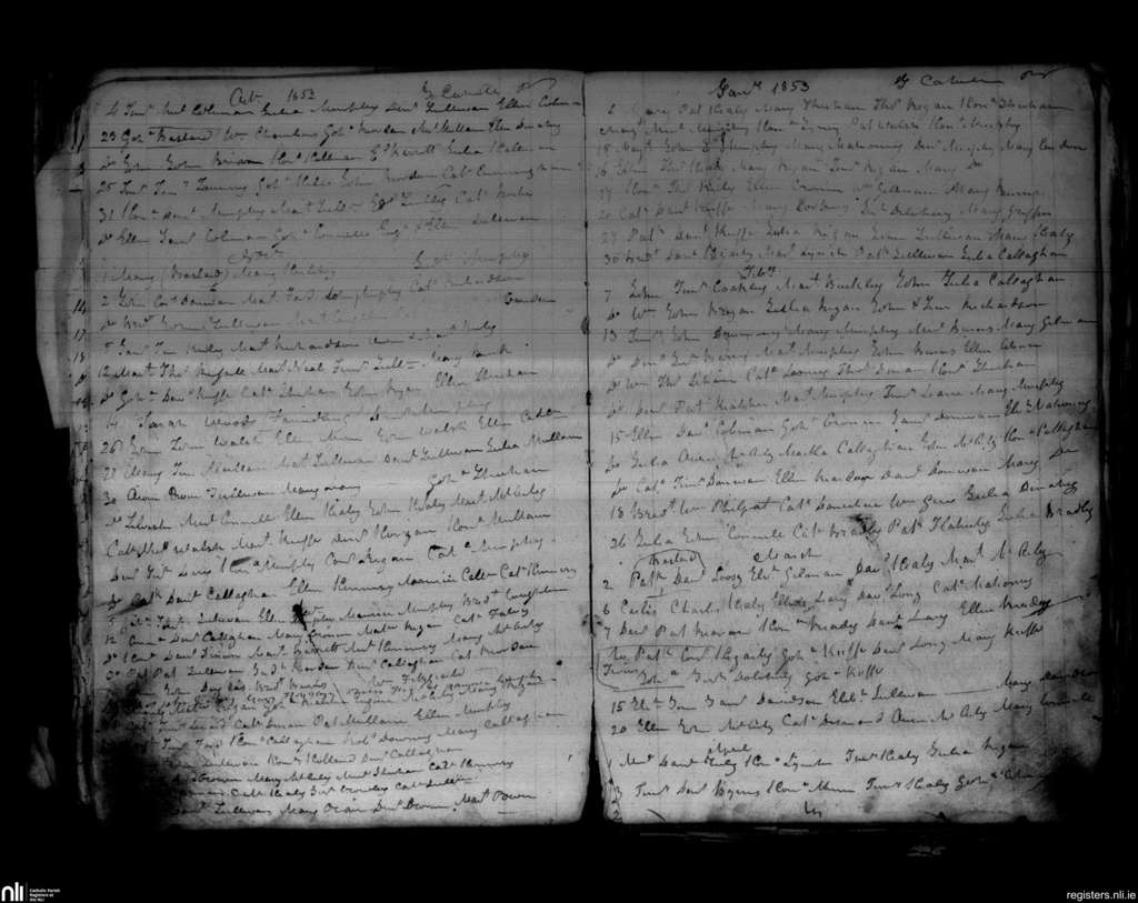 Inniscarra; County of Cork; Diocese of Cloyne. Baptisms, Oct. 1852 to Apr. 1853