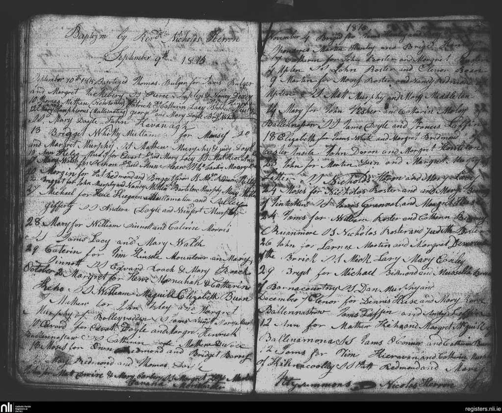 Litter; County of Wexford; Diocese of Ferns. Baptisms, Sep. 1815 to Dec. 1815