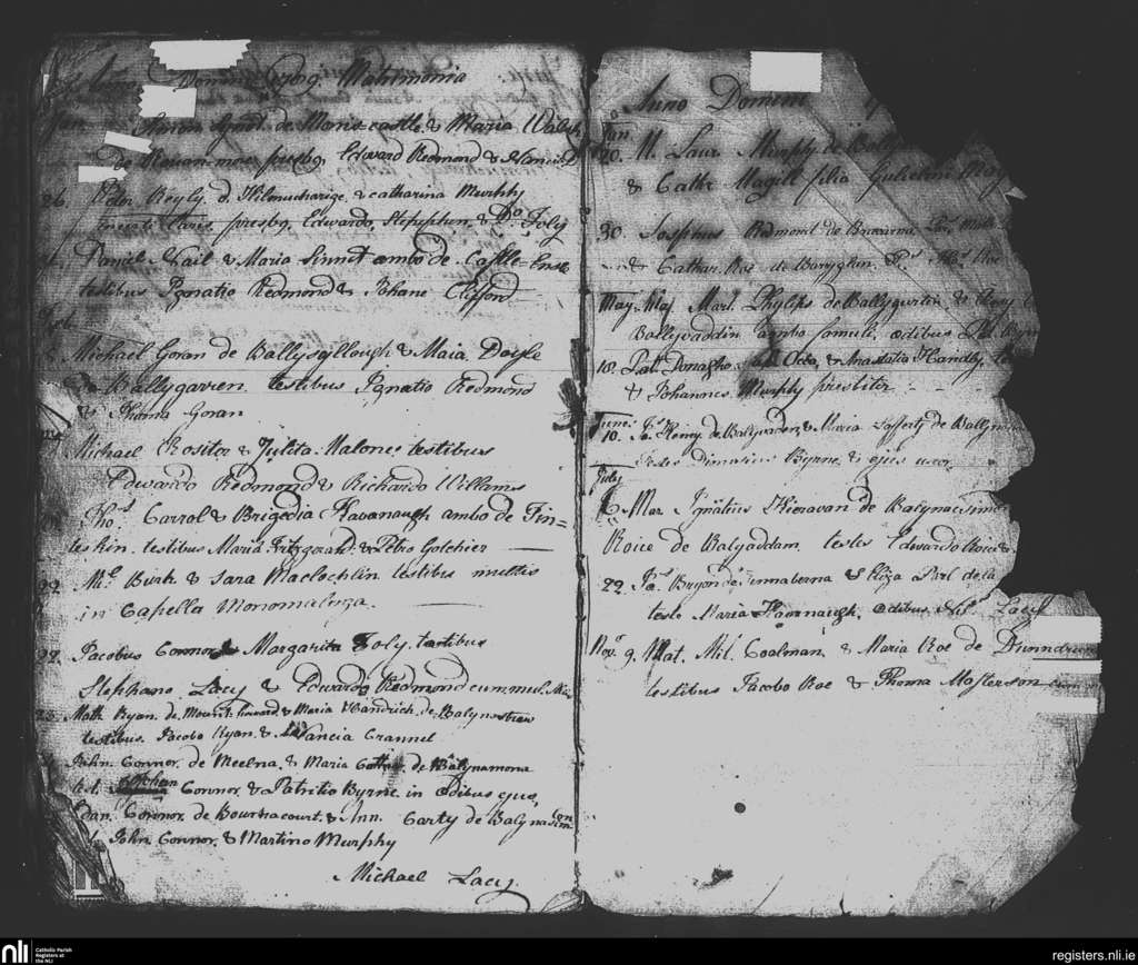 Litter; County of Wexford; Diocese of Ferns. Marriages, Jan. 1789 to Nov. 1789
