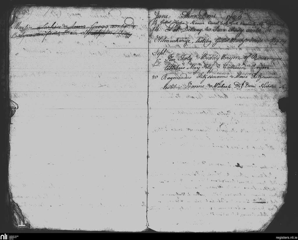 Litter; County of Wexford; Diocese of Ferns. Marriages, June 1789 to Sep. 1789