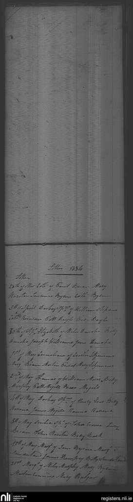 Litter; County of Wexford; Diocese of Ferns. Baptisms, Mar. 1834 to May 1834
