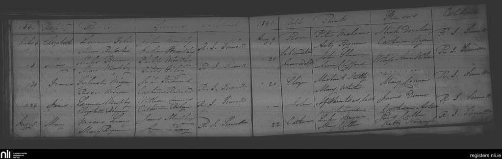 Litter; County of Wexford; Diocese of Ferns. Baptisms, July 1841 to Aug. 1841