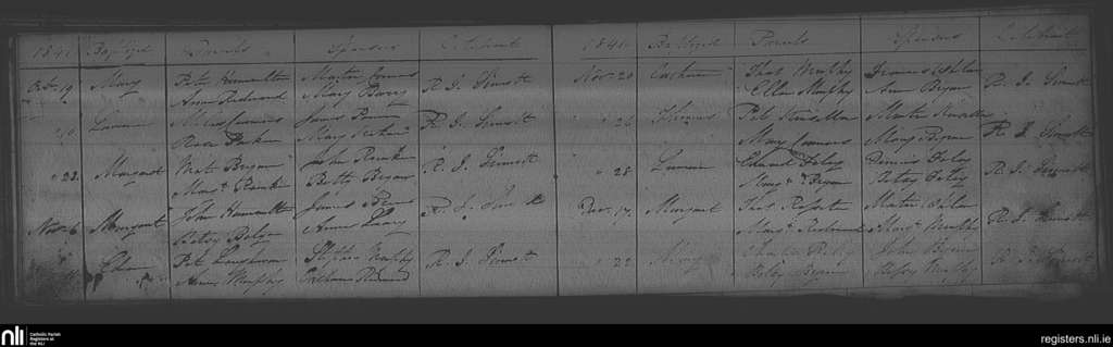 Litter; County of Wexford; Diocese of Ferns. Baptisms, Oct. 1841 to Dec. 1841